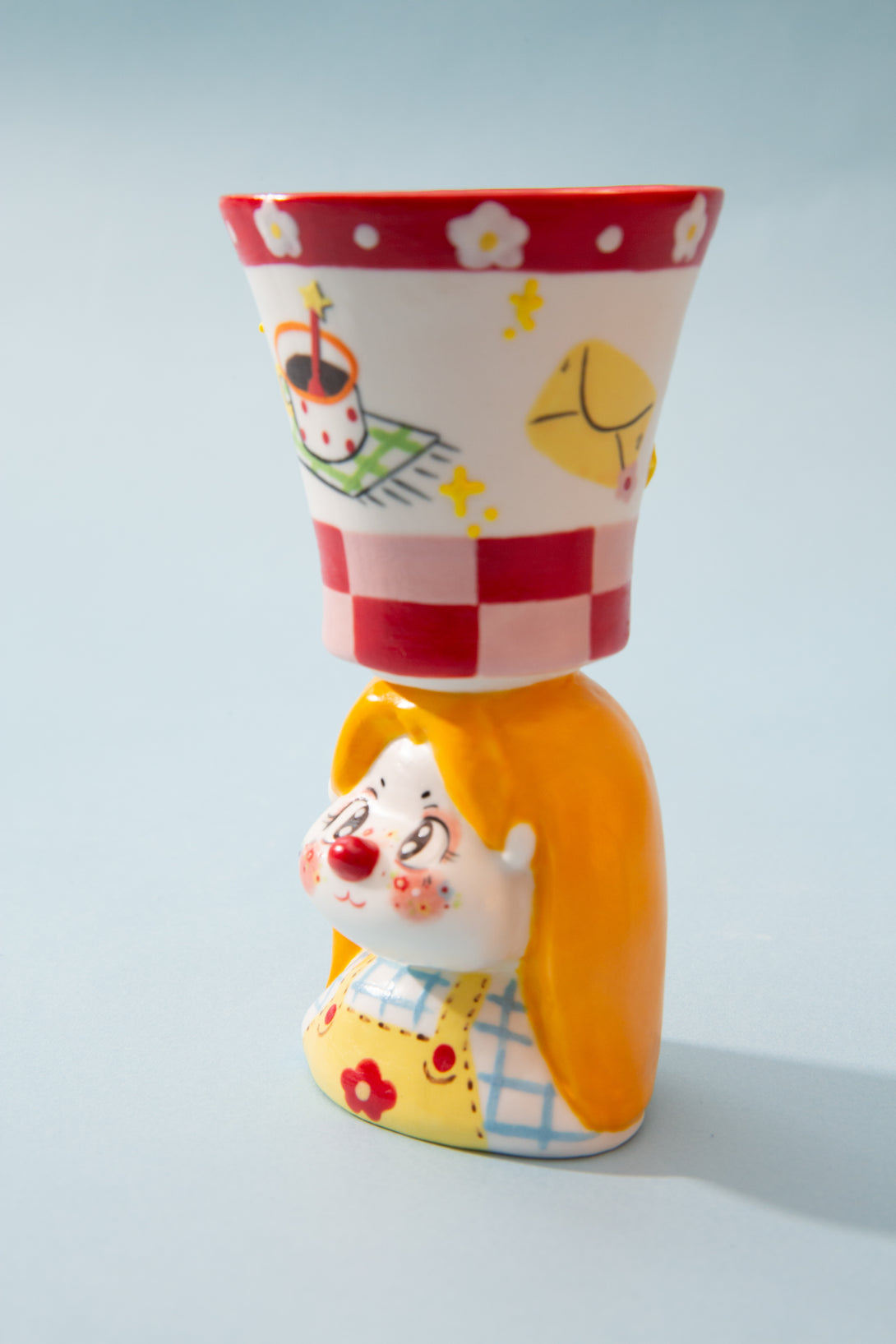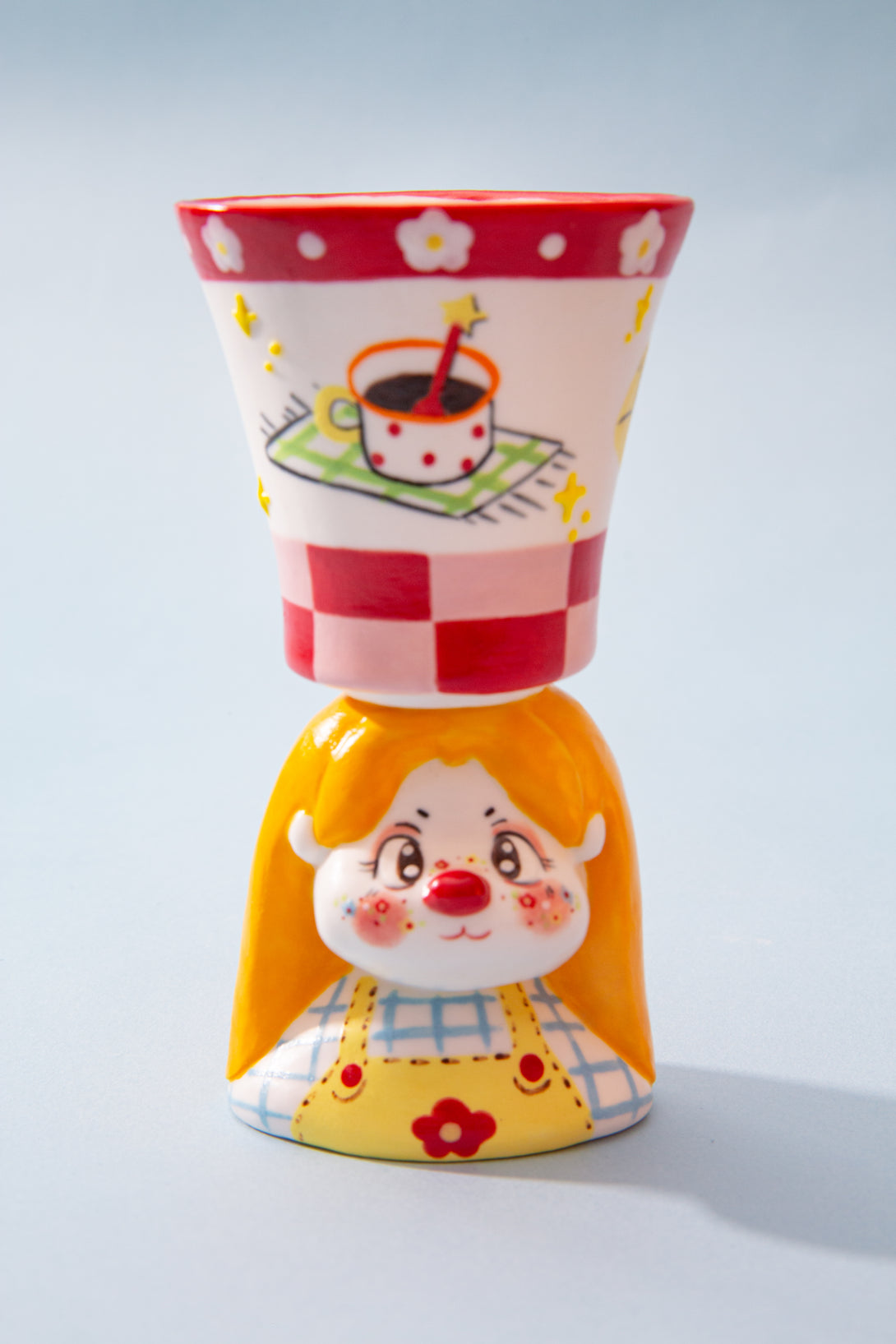 • A handmade mug that blends function with playful design. A sculpted base with hand-painted details gives this piece a playful 3D character that feels as much like art as it does a coffee cup.